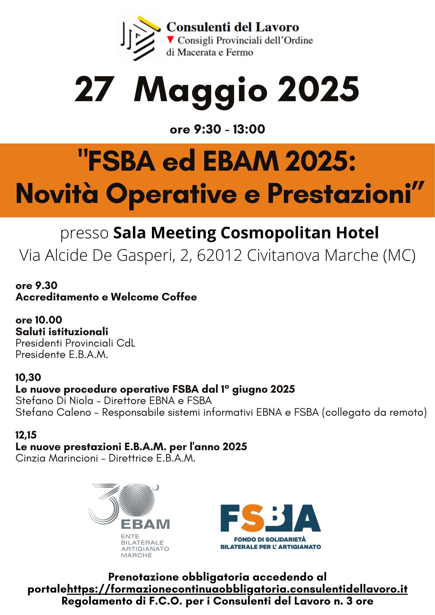 Giornata formativa di EBAM e FSBA con i Consulenti del Lavoro di Macerata e Fermo